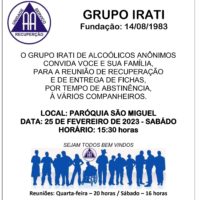 O Grupo Irati de Alcoólicos Anônimos convida você e sua familia, para a reunião de…