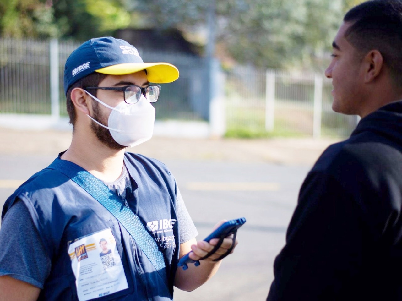 Os recenseadores estarão identificados com colete azul e crachá, que inclui um QR Code, que levará a um site de identificação do recenseador. As identidades também poderão ser verificadas por telefone no número 0800-721-8181. “Os recenseadores vão estar identificados. Vão estar usando colete, vão estar usando um crachá com identificação. No crachá, tem as informações ali, um 0800 que a pessoa pode ligar para verificar a identidade do entrevistador, tem um QR Code, que a pessoa pode escanear para saber também, pesquisar pelo nome, porque tem um site, o site é Respondendo ao IBGE, se a pessoa digitar no Google, ela encontra facilmente esse site. Ela vai pesquisar pela matrícula, pelo nome ou por algum documento pessoal do recenseador para saber se ele de fato trabalha para o IBGE. Vai aparecer a foto dele ali, vai comparar a foto com o crachá”, conta Cristian.