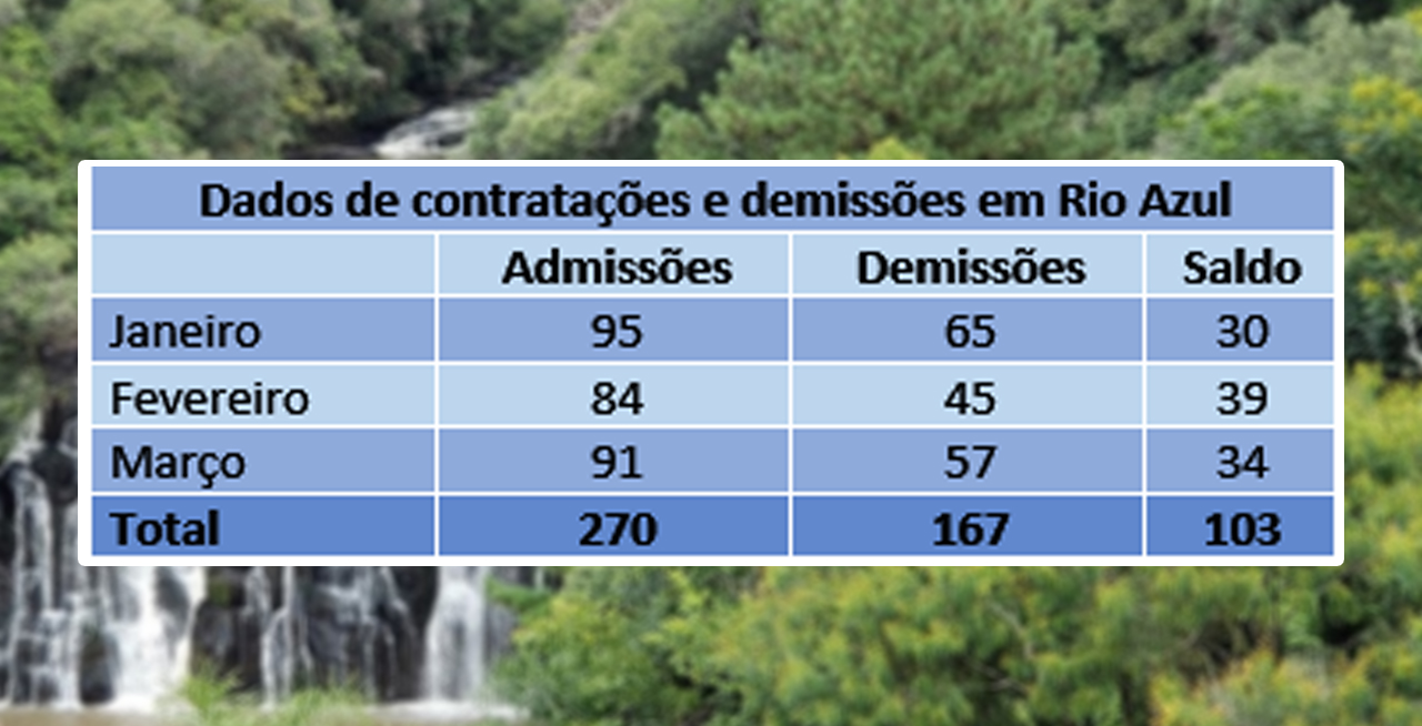 | Número de admissões e demissões entre janeiro e março em Rio Azul |