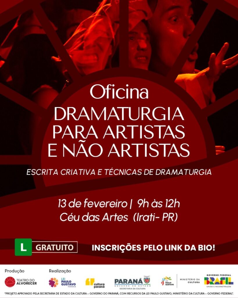O CEU das Artes de Irati receberá nesta semana uma oficina de dramaturgia e também uma apresentação teatral da peça “O soldado, a tigresa e uma outra história”. A peça será apresentada na quarta-feira, 12, e na quinta, 13, a partir das 20 horas.