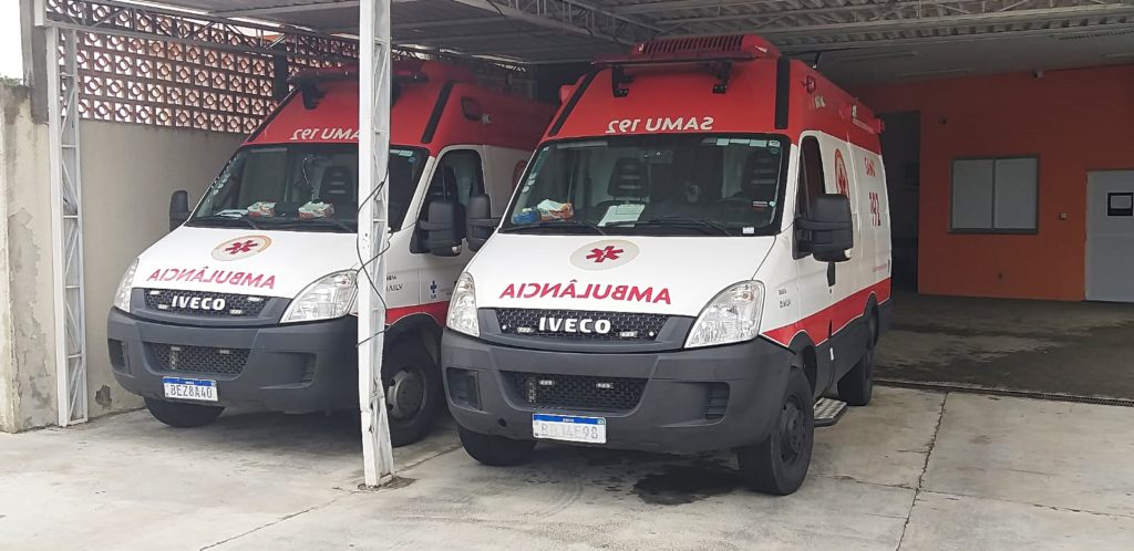 Ambulâncias do SAMU na base de Irati, localizada junto ao Pronto Atendimento da Vila São João. Foto: Paulo Henrique Sava