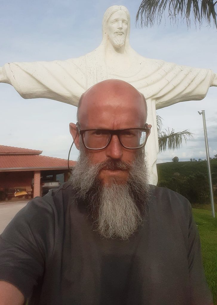 Heinz Denzer na estátua do Cristo, em Encantado-RS. Foto: Arquivo pessoal