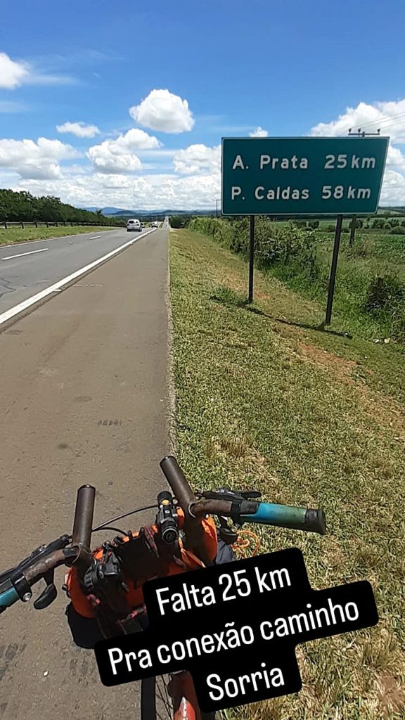 O trajeto faz parte de uma promessa que o ciclista cumpre nos últimos quatro anos. “Depois eu fiz uma promessa na minha vida, por causa de um problema no joelho. Agora estou cumprindo ela, quando que eu faço o famoso Caminho da Fé, que começa em Águas da Prata (MG) e vai até Aparecida do Norte (SP)”, conta.