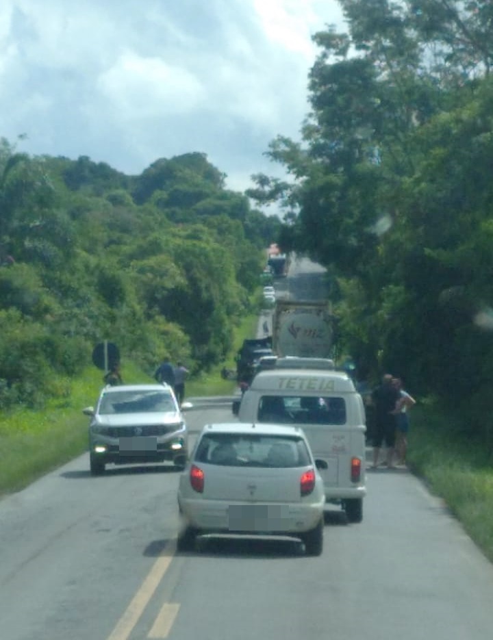 Acidente causou interdição da BR-153, em Irati. Foto: WhatsApp-Divulgação