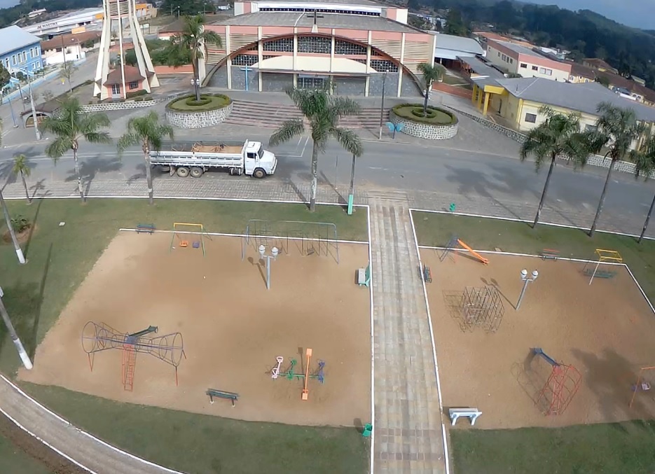Imagem da Praça Tiradentes e da Igreja Matriz Sagrado Coração de Jesus, em Rio Azul. Foto: Prefeitura de Rio Azul/Arquivo |