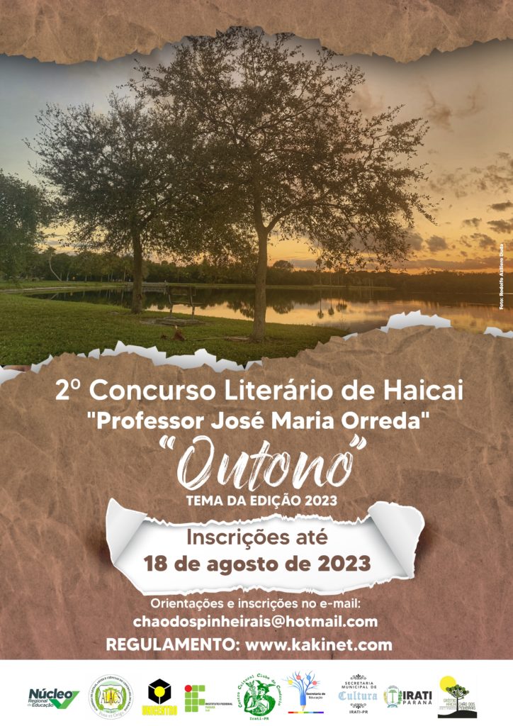 Estão abertas até o dia 18 de agosto as inscrições para o 2° Concurso Literário de Haicai Professor José Maria Orreda, em Irati. O concurso premiará com certificado e publicação em livro os melhores haicais produzidos pelos candidatos.