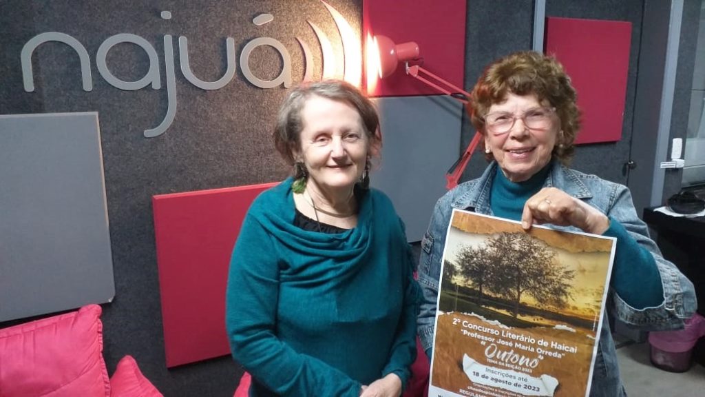 Professoras Eliane Maria Born Boff e Dorotéa Iantas Miskalo contaram detalhes do Concurso Literário de Haicai Professor José Maria Orreda em participação no programa “Meio Dia em Notícias” da Super Najuá. Foto: João Geraldo Mitz (Magoo)