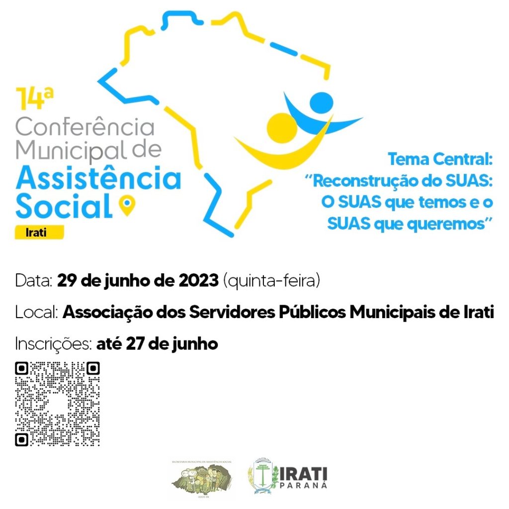 A Conferência Municipal de Assistência Social de Irati será realizada nesta quinta-feira. O evento ocorre na Associação dos Servidores Públicos Municipais, das 8h30 às 16h30. Durante a programação serão discutidos ações e projetos que serão levados à conferência estadual e que poderão integrar o planejamento municipal, estadual e federal da área da assistência social.
