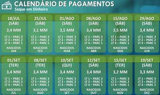 No mesmo dia a CAIXA realizará o pagamento de novo lote da segunda parcela do Auxílio Emergencial do lote 2 (crédito da parcela 1 realizado entre 16/05 e 29/05). Também nesse dia, creditará o quarto lote da parcela 1 (quem não recebeu nenhuma parcela). Os valores serão creditados na Conta Poupança Social Digital da CAIXA, de maneira escalonada conforme o mês de aniversário do beneficiário.