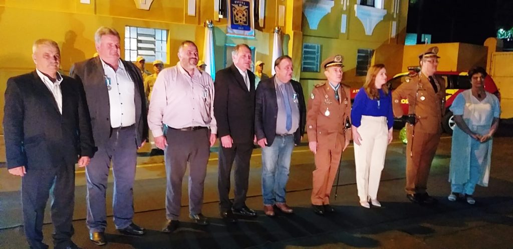 Outras homenagens – O comandante do Corpo de Bombeiros do Paraná, Coronel Manoel Figueiredo Vasco, também foi homenageado com uma comenda. Outras autoridades, como os deputados Leandre Dal Ponte (Federal do PSD), Hussein Bakri e Artagão Júnior (estaduais), Sandro Alex (Federal) e os prefeitos Jorge Derbli, de Irati, e Moacir Szinvelski, de Mallet, também receberam medalhas.