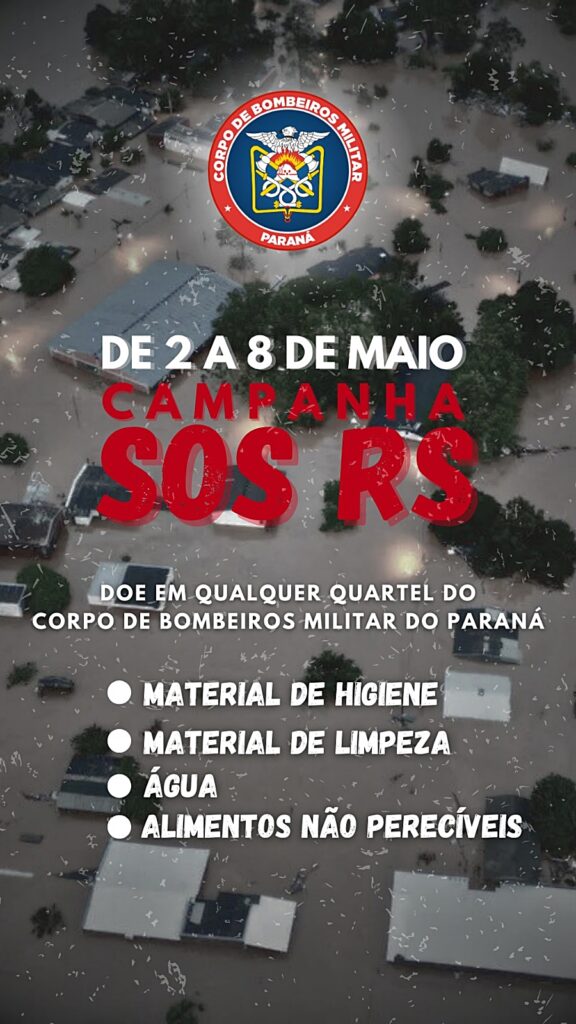 ‘É muito importante neste momento nós nos organizarmos para socorrermos e ajudarmos nossos irmãos gaúchos. O Corpo de Bombeiros vai abrir todas as suas unidades como pontos de arrecadação destes gêneros, em Irati, São Mateus do Sul, União da Vitória, Prudentópolis, General Carneiro, Mallet, Rebouças e Imbituva, que fazem parte da nossa área de atuação. Todos os quarteis de Bombeiro Militar e Brigada Comunitária do estado do Paraná também estão abertos a estas doações”, frisou.