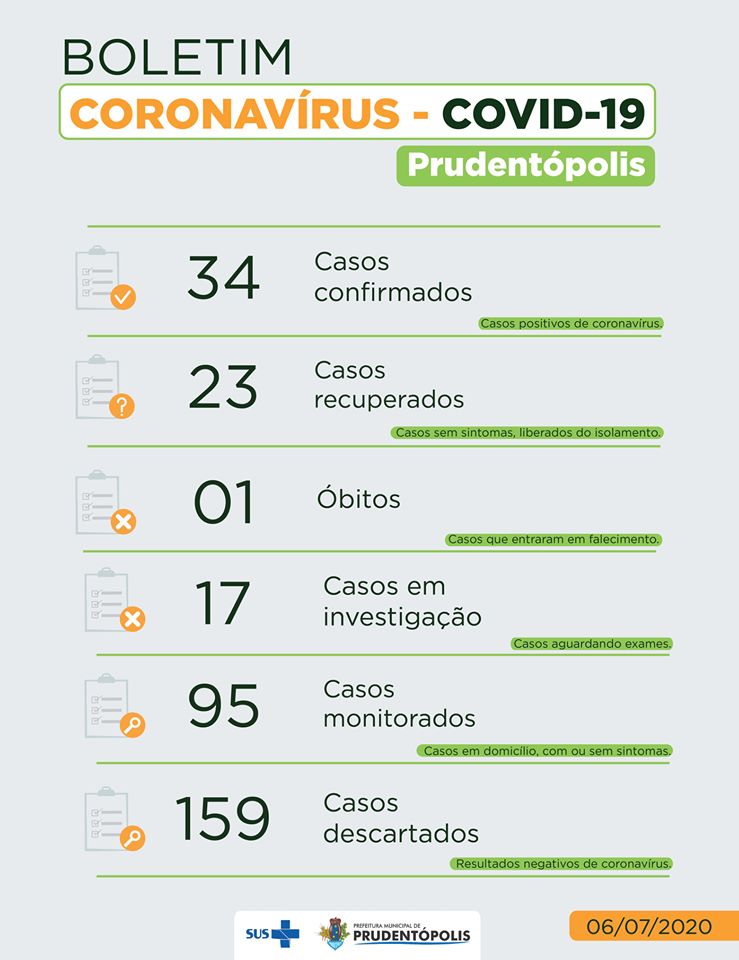 O município de Prudentópolis registrou mais um caso de coronavírus (Covid-19) e três pacientes recuperados nesta segunda-feira, 6. Com isso, a cidade já confirmou 34 pessoas infectadas desde o início da pandemia e 23 curadas.