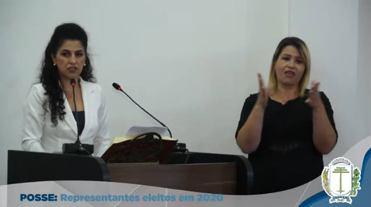 Prometendo maior acessibilidade, Teresinha Miranda Veres prestou juramento acompanhada de uma intérprete de sinais