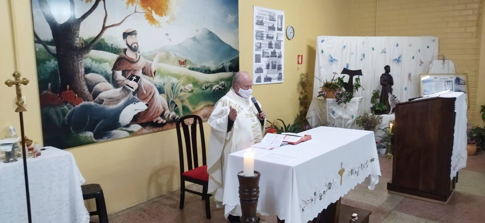 Missa em Ação de Graças aconteceu nesta segunda na Capela São Francisco de Assis. Outras celebrações serão realizadas até domingo para celebrar a data/Lennon Diego Gauron