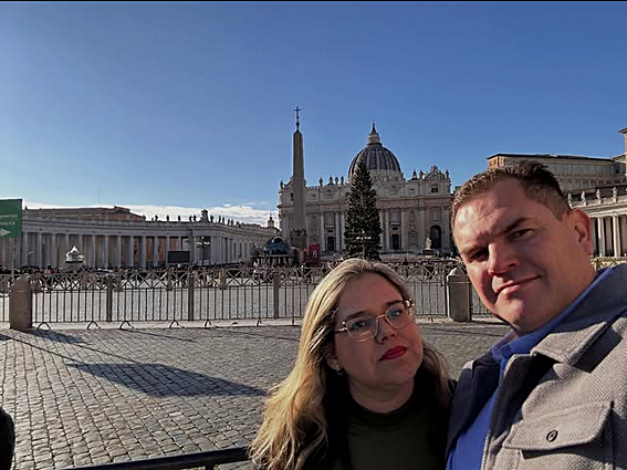 Ciro Ivatiuk e Letícia Torres na Praça São Pedro, no Vaticano. Foto: Arquivo pessoal