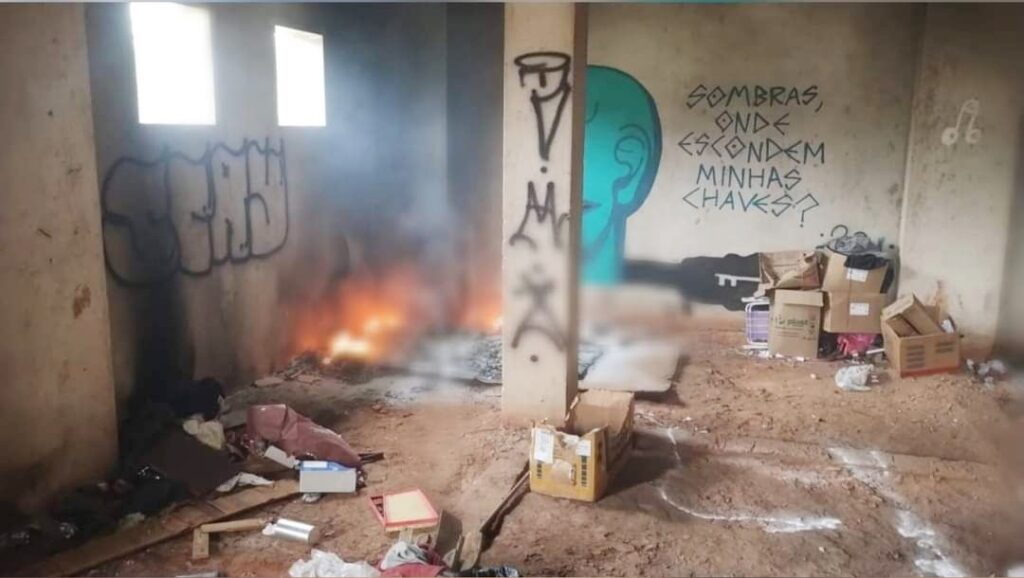 Testemunhas acionaram a PM depois que avistaram a vítima sair correndo com o corpo em chamas e mais dois homens deixando o prédio abandonado. Segundo as informações repassadas, um homem era grisalho e estava com uma mochila nas costas. Já o outro envolvido era jovem e usava um óculos quadriculado espelhado.
