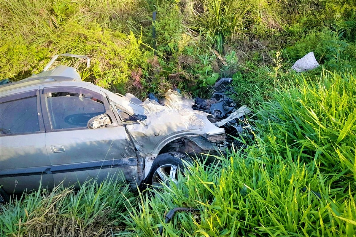 | Acidente entre caminhonete e Fiat Uno ocorreu na BR-277, em Fernandes Pinheiro. Foto: PRF/Divulgação |