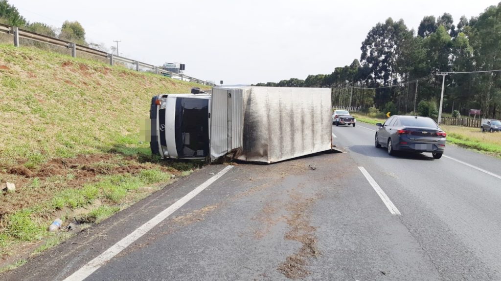 Na BR-376, em Ponta Grossa, um caminhão Mercedes Benz saiu da pista e tombou no quilômetro 525 da rodovia na manhã de ontem. De acordo com informações apuradas pela PRF, o pneu traseiro do caminhão estourou. Com isso, o caminhão saiu da pista e tombou sobre a faixa da esquerda. O condutor, de 41 anos, e a passageira, não se feriram. O trânsito ficou lento em apenas uma faixa até a remoção do caminhão.