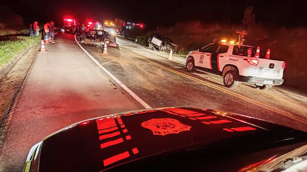 Duas pessoas morreram em um grave acidente envolvendo um caminhão e dois carros na BR-277, em Prudentópolis, na noite de quinta-feira. Uma das vítimas foi um passageiro de uma caminhonete S-10. Segundo a Polícia Rodoviária Federal (PRF), ele tinha 23 anos e morava no município de Morro da Fumaça/SC. O condutor de um Siena, de 32 anos, que residia em Curitiba, também morreu no local.
