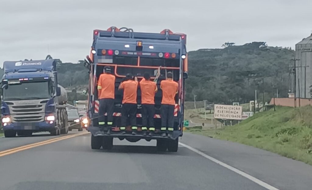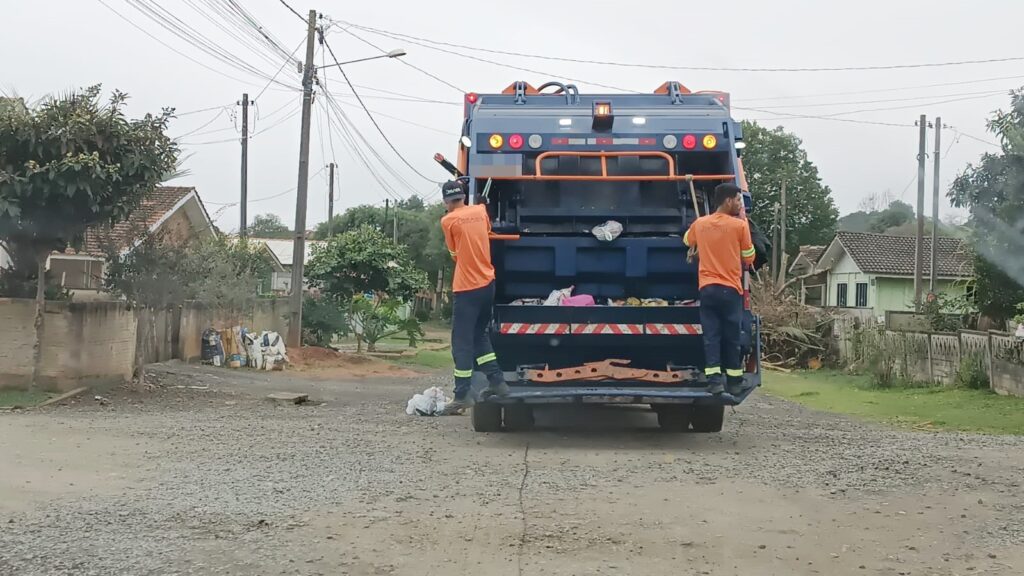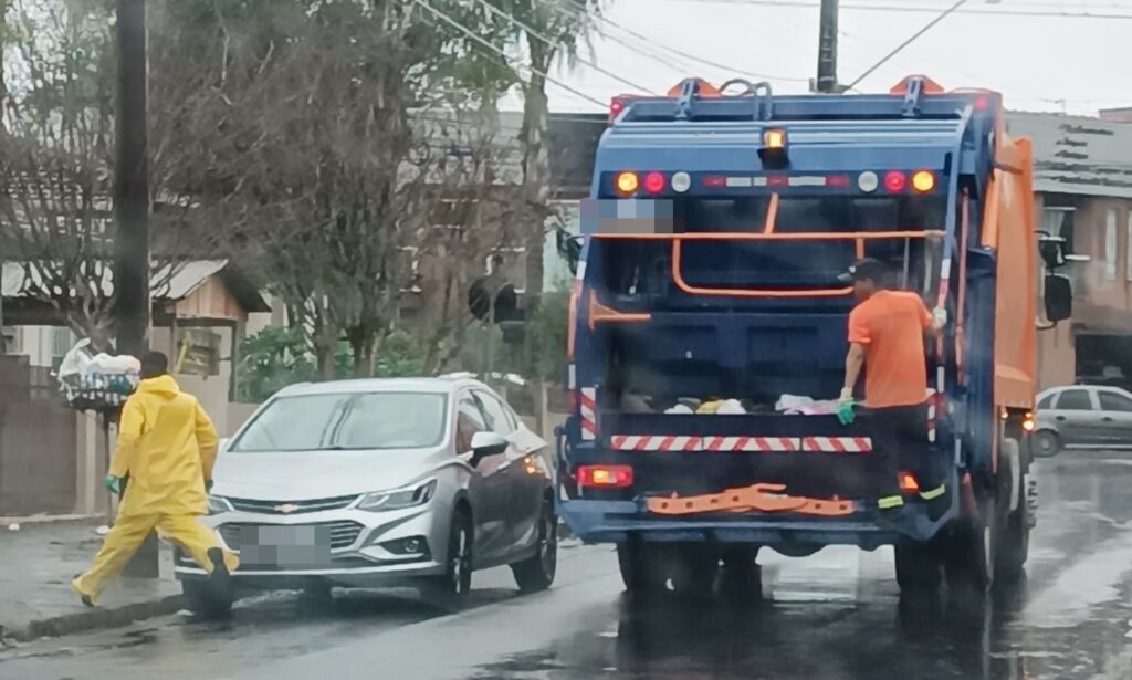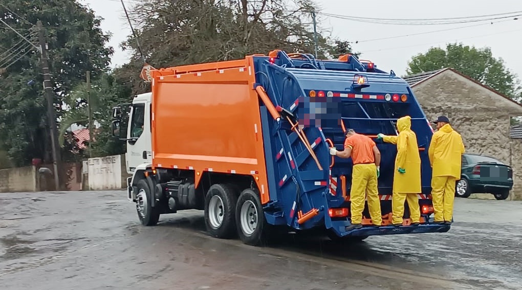 Coletores da empresa C Brasil realizando recolhimento de lixo em Irati. Foto: Divulgação