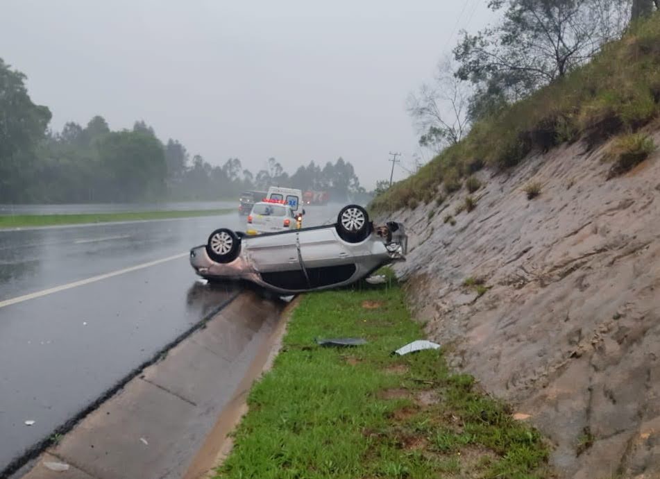 Também na manhã desta sexta-feira, 9, um Voyage, de Londrina, capotou na BR-376, em Tibagi, nas proximidades da praça de pedágio. Dois ocupantes do carro sofreram ferimentos leves. Eles foram socorridos e encaminhados ao Pronto-Socorro de Ponta Grossa. Conforme a PRF, o condutor saiu de Londrina e tinha como destino a cidade de Itajaí/SC. Chovia forte no momento do acidente.