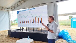 Na gestão de risco da produção, o agricultor precisa estar atento à forma de comercialização da soja, de acordo com o especialista. “Aquela comercialização do produtor que plantava, colhia e vendia tudo depois de colhido, praticamente ele esperava colher para vender, isto não pode acontecer mais. Hoje, ele tem que fazer uma gestão de preço e venda escalonada. Hoje, a Lavoro está falando sobre operações de Barter, ou seja, a Lavoro oferece a chance de comprar os insumos e travar os custos. O produtor deixa de correr riscos e passa a ter o foco só em comercializar o excedente da produção, que seria o lucro. Aí, ele tem que fazer a gestão, de repente até pegando o acompanhamento de profissionais aqui da Lavoro, para poder vender de forma escalonada, não concentrar todas as vendas, que pode ser uma oportunidade gigantesca de ganho, mas pode trazer perdas grandes. Não fazer concentração, mas venda escalonada ao longo do tempo”, frisou.