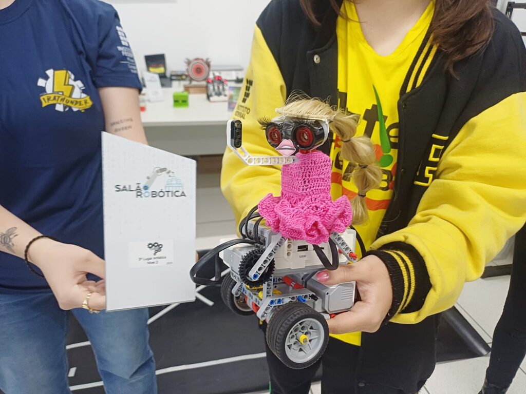 “Ela dança, e como somos dançarinas, dançamos com ela também. Foi uma experiência incrível poder juntar a robótica com a dança. Como já dançamos, escolhemos uma música animada, fomos escrevendo o que ela podia fazer, adaptando para código, montando e criamos ela. Na estrutura, utilizamos bastante do que tínhamos em um robô que era seguidor de linha, utilizamos bastante da base do nosso seguidor para continuar ela”, frisaram as alunas.