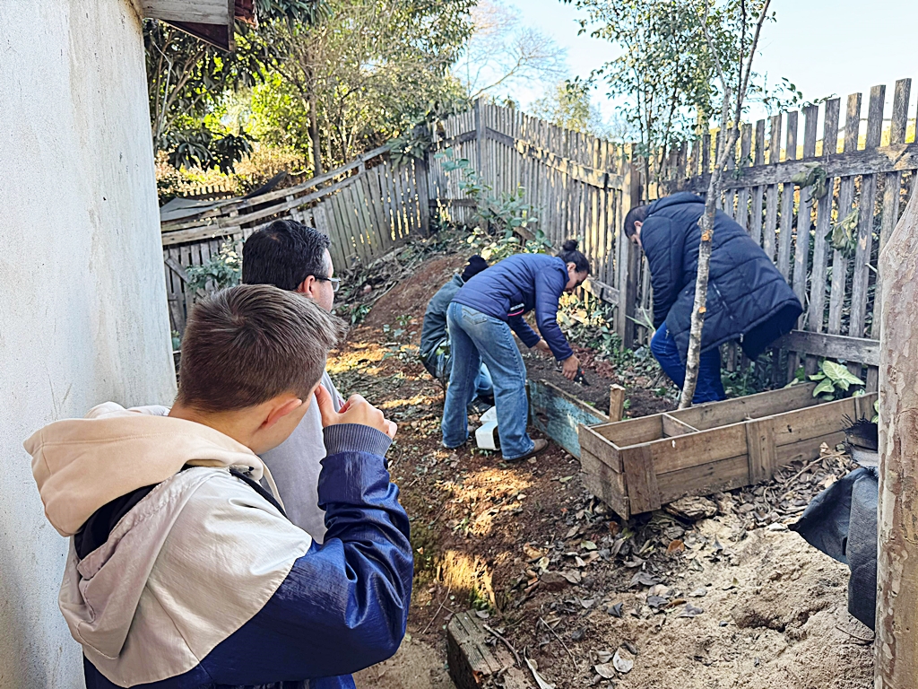 A residência de Dona Sebastiana fica na Rua Rondônia, entre a Trajano Gracia e a BR 153. Estudantes que participam do projeto também foram até a casa da Dona Sebastiana para contar um pouco sobre a experiência que estão vivendo. Para Lediane, o aprendizado na prática é muito grande. “Nós aprendemos bastante, o conhecimento da agronomia a gente aprende com o solo e as plantas, e é muito importante trazermos este conhecimento para a população. Ajudar a Dona Sebastiana, que ajuda tantas pessoas, para nós é muito gratificante. Ficamos felizes e vemos o quanto ela está gostando da melhoria da parte da frente e das plantas que estamos trazendo para ela, ficamos muito felizes”, comentou.