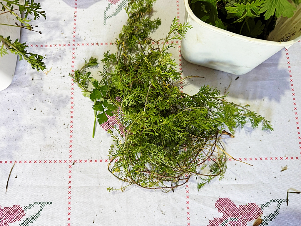O estudante Leonardo acredita que a atividade prática na casa da benzedeira servirá para um aprendizado sobre a diversidade de plantas medicinais existentes. Ele levou a planta chamada de “Rubi” e o mentruz, muito utilizado para curar machucados.