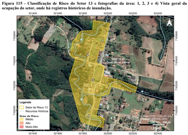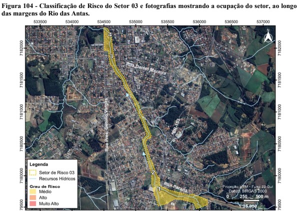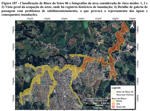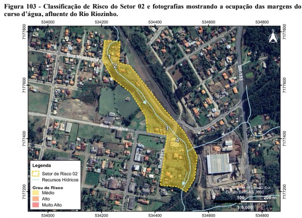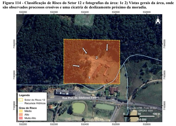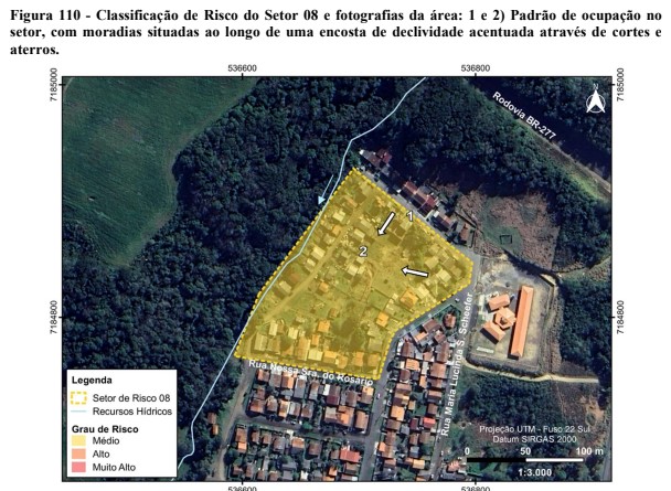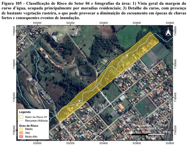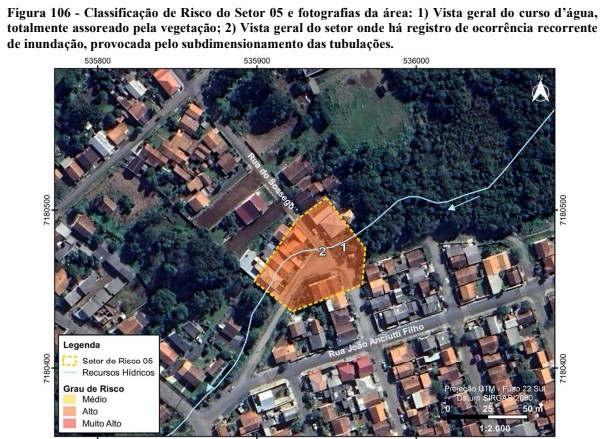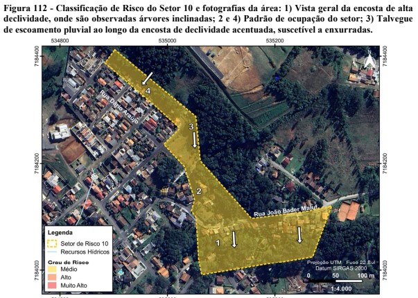 Além de grau de risco médios para deslizamento planar, o estudo também verificou que o trecho entre a rua João Bader Maluf e a rua Dário Araújo também possui risco de grau médio para enxurrada.