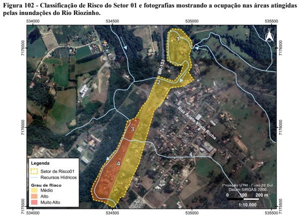 Já os demais trechos possuem um grau de risco médio. Na lista estão incluídos também trechos citados anteriormente, como a rodovia BR-153 e as margens dos arroios.