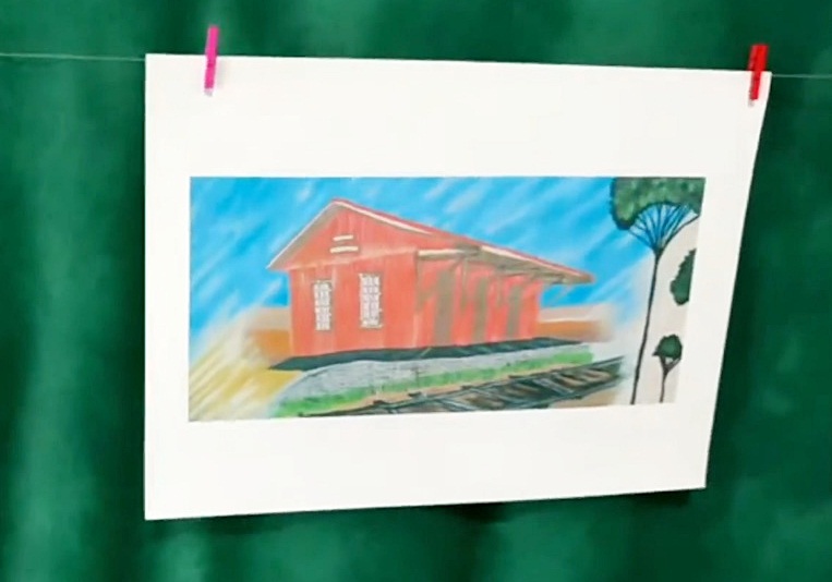 Álvaro também fotografou pinturas feitas por um artista de Fernandes Pinheiro nos muros da Escola Municipal Floresval Ferreira. Uma delas retrata a Estação Ferroviária do município; a outra mostra um bem-te-vi sobre um muro. Depois de fotografar as pinturas, ele fez registros da estação e do pássaro, para fazer uma comparação entre os originais e as pinturas. “Eu fiz uma comparação para mostrar a imagem do artista pintada no muro do colégio e a da estação atual. No caso, você analisando as duas, compara. Tem a imagem do bem-te-vi, a de baixo pintada pelo artista e a de cima registrada através de um olhar diferenciado”, ressaltou.