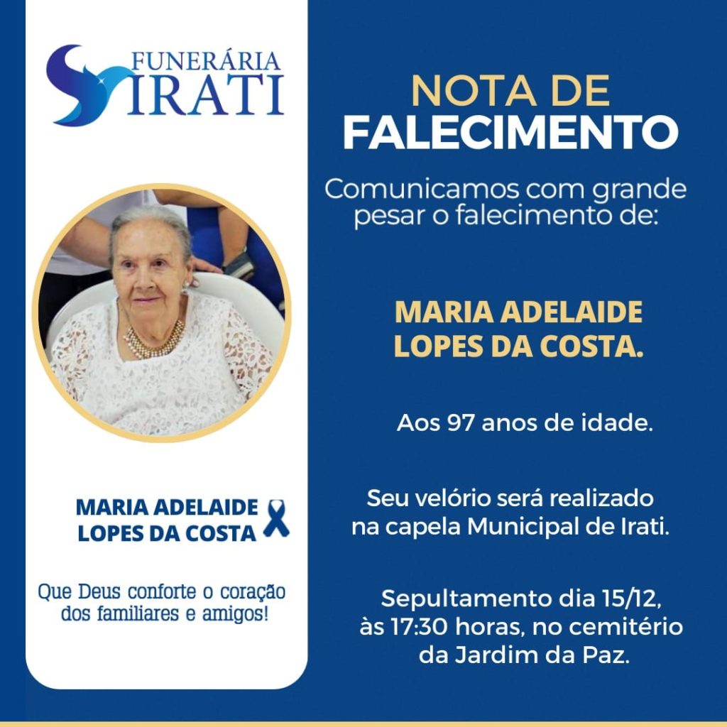 Notas de falecimentos recebidas no mês de Dezembro pela Rádio Najuá:
