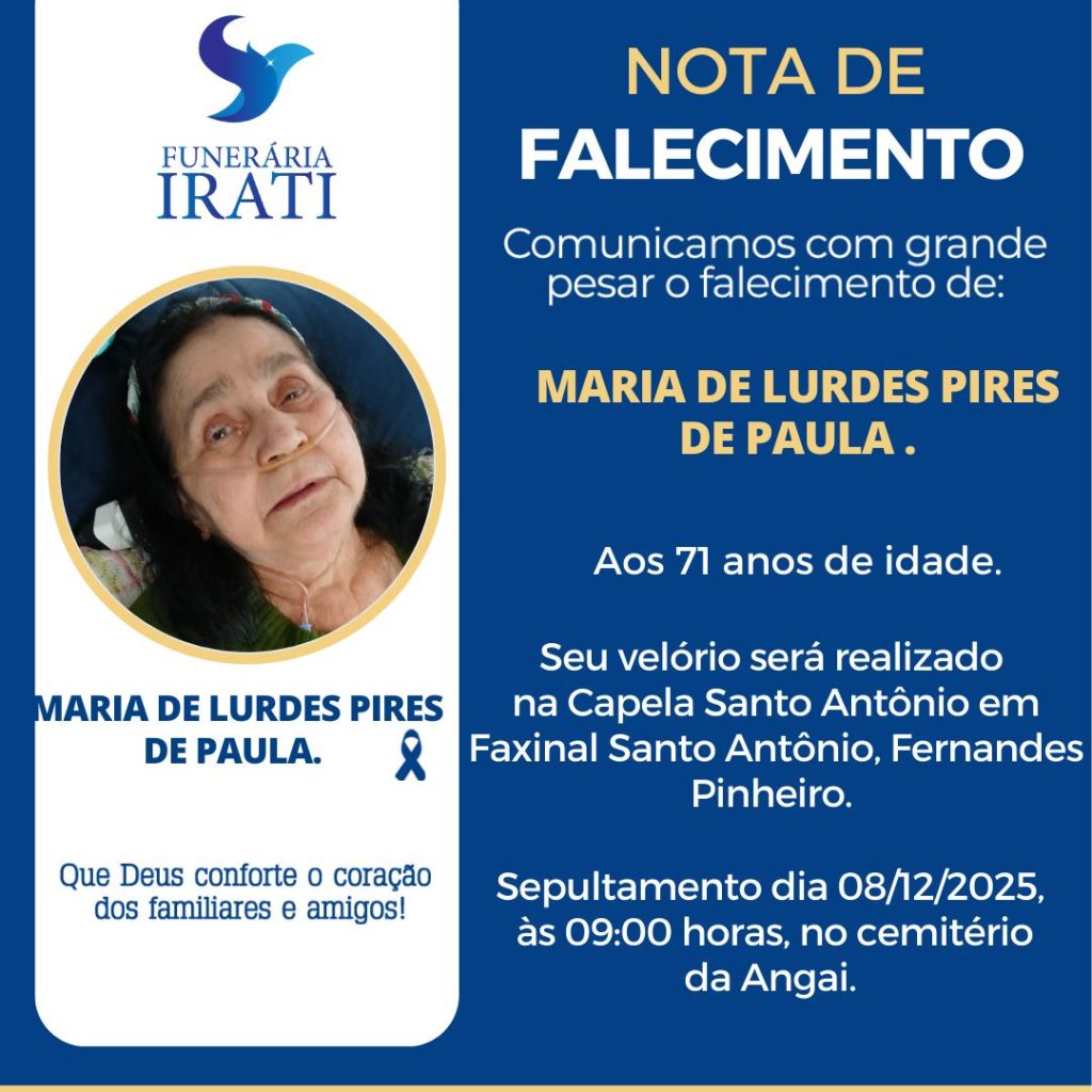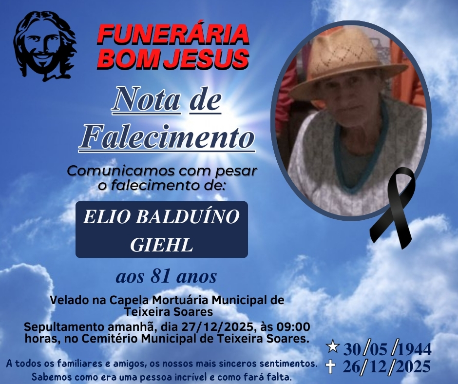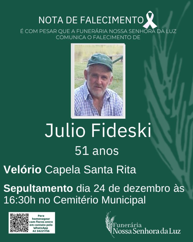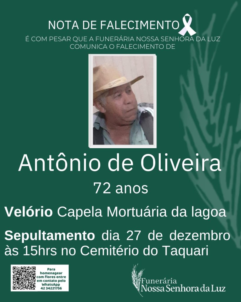 Notas de falecimentos recebidas no mês de Dezembro pela Rádio Najuá: