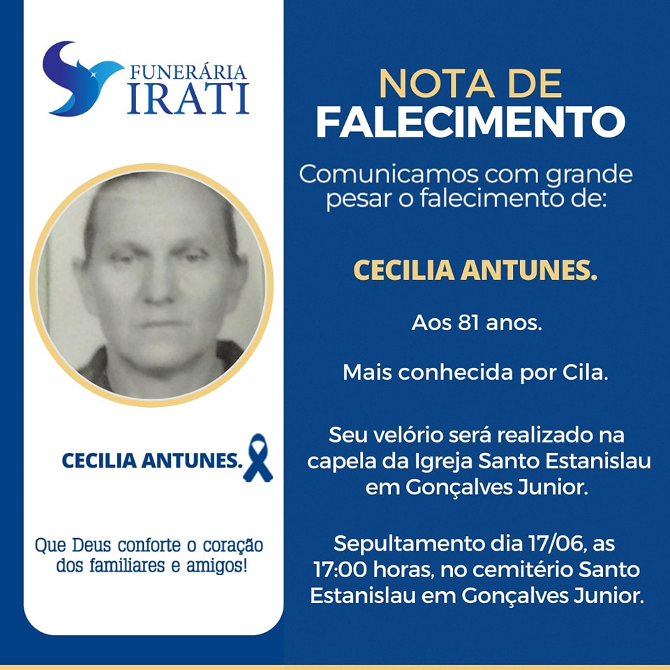 Notas de falecimentos recebidas no mês de Junho pela Rádio Najuá: