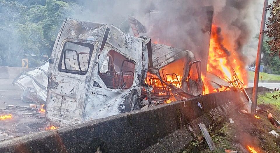 O bloqueio no trânsito inicia no km 662, em frente à PRF de Tijucas do Sul. Equipes da PRF, da concessionária Arteris Litoral Sul e do Corpo de Bombeiros estão atuando no local. As causas do acidente estão sendo investigadas.