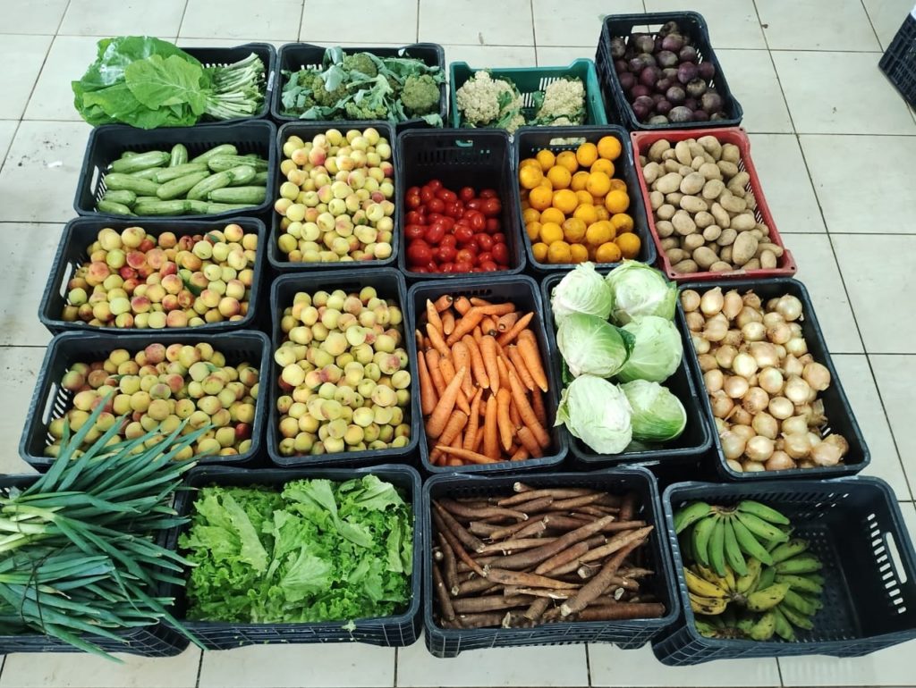 Vários produtos são vendidos na feira agroecológica como banana, mandioca, alface, repolho, cebola, cenoura, pêssego, tomate, entre outros. Foto: Divulgação