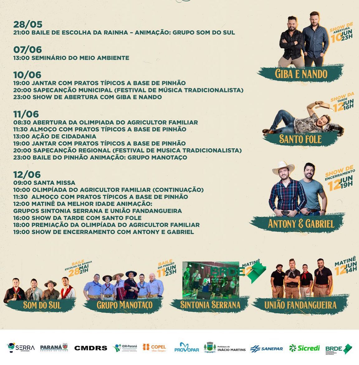 | Programação completa da Festa do Pinhão, em Inácio Martins. Foto: Divulgação |