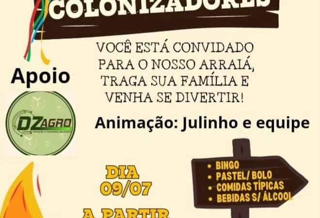 Arraiá da Escola Municipal dos Colonizadores, dia 09 de julho, no Pavilhão da Capela Santo Estanislau em Gonçalves Junior, a partir das 13h