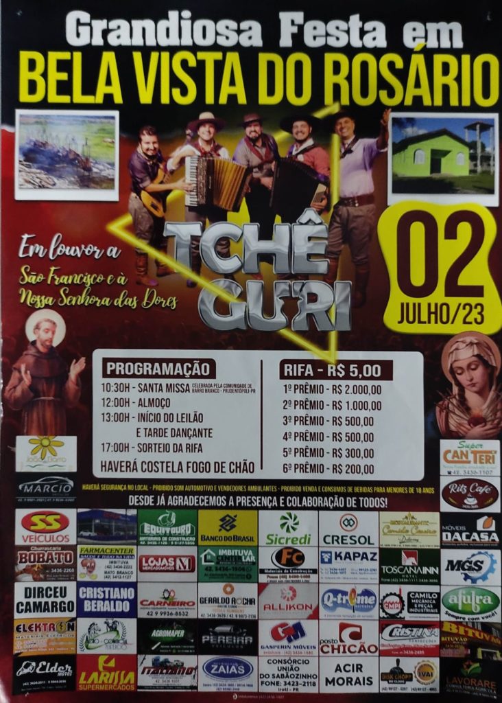 13h – leilão, binguinhos, jogos, músicas e demais atrações