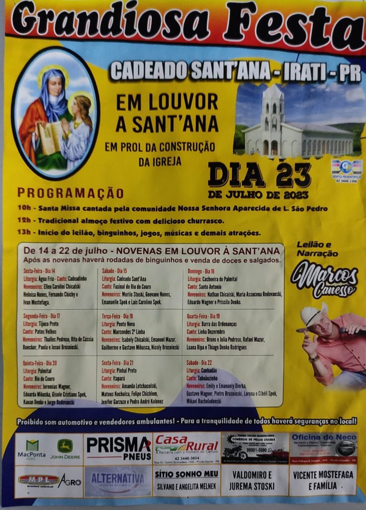 Festa em Cadeado Santana, dia 23 de julho, em louvor a Sant’Ana, em prol da Construção da Igreja
