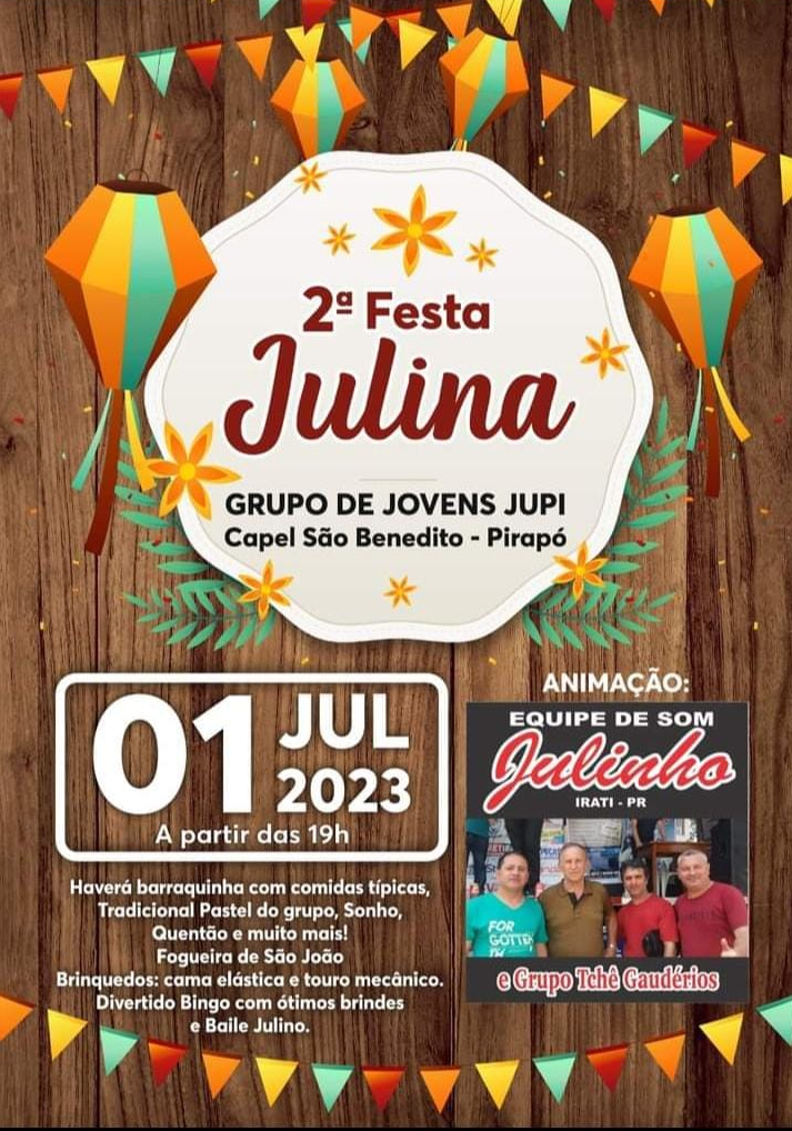 Grupo de Jovens JUPI promove 2ª Festa Julina na Capela São Benedito em Pirapó, sábado, dia 1º de julho, a partir das 19h