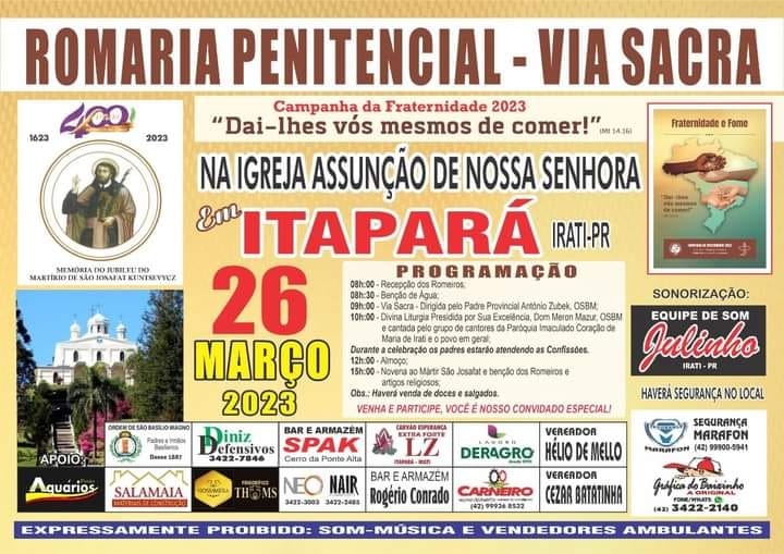 Romaria Penitencial e Via Sacra, dia 26 de março, na Igreja Assunção de Nossa Senhora em Itapará