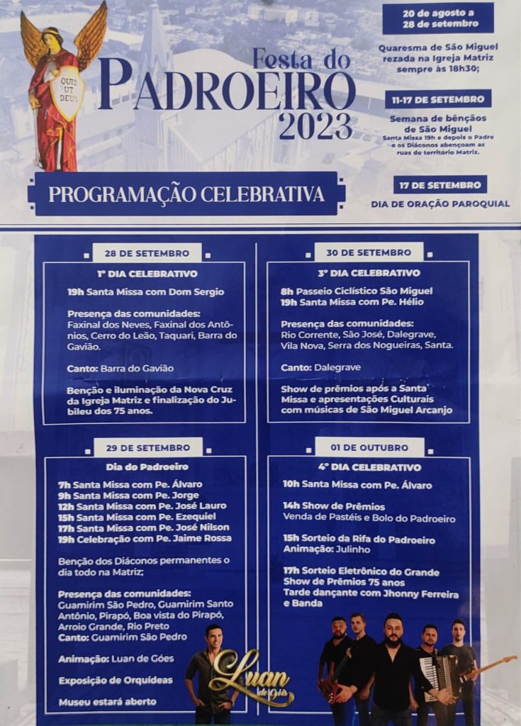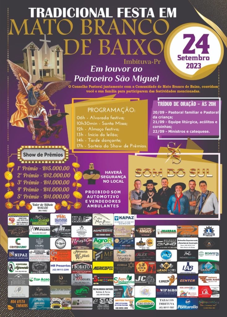 Tradicional festa em Mato Branco de Baixo – Imbituva, dia 24 de setembro, em louvor ao Padroeiro São Miguel