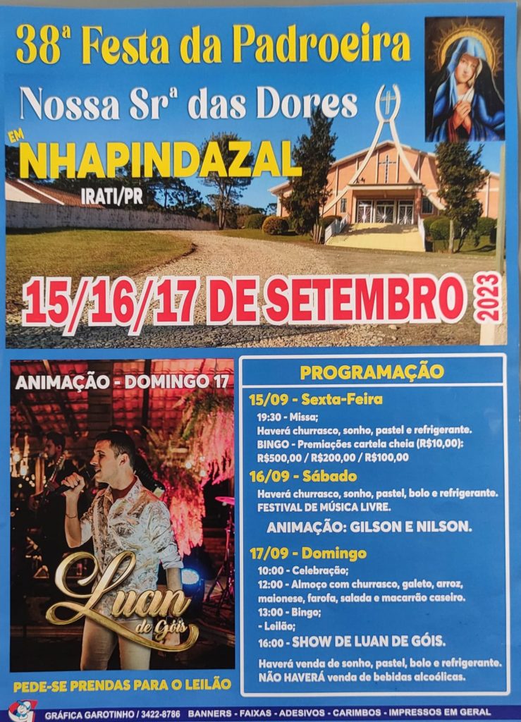 38ª festa da Padroeira Nossa Senhora das Dores em Nhapindazal, dias 15, 16 e 17 de setembro