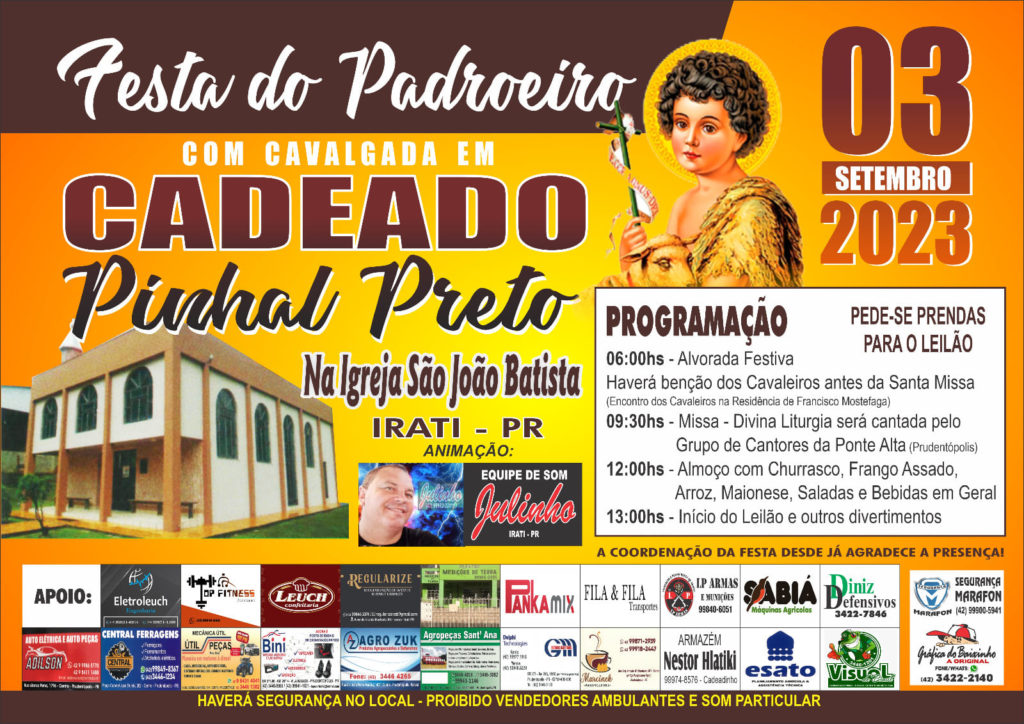 Festa do Padroeiro com cavalgada, dia 03 de setembro em Cadeado – Pinhal Preto, na Igreja São João Batista
