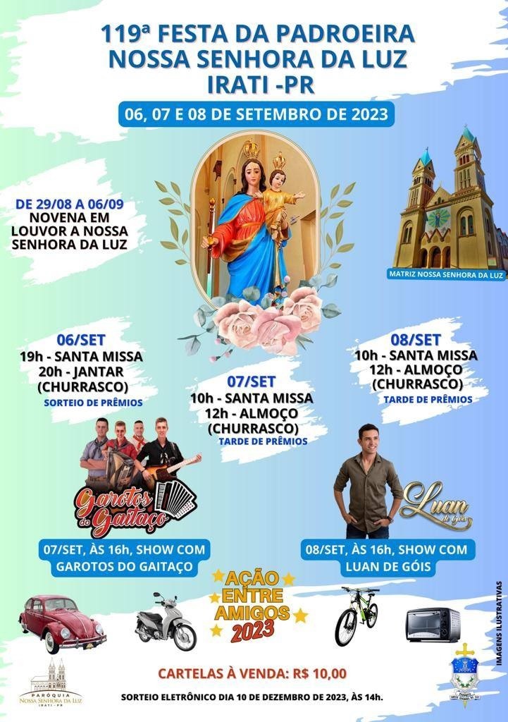 119ª Festa da Padroeira Nossa Senhora da Luz, dias 06, 07 e 08 de Setembro
