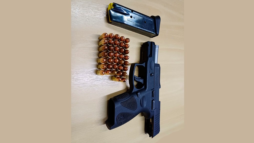 Durante a abordagem, a polícia também apreendeu com o suspeito uma pistola, um carregador e munições. Foto: PRF