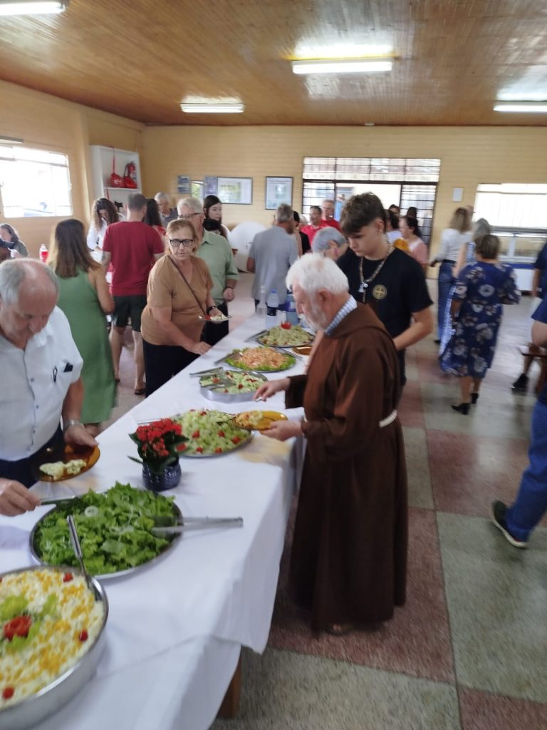 As comemorações começaram ainda no domingo (12), com um almoço festivo na Capela São Francisco, que contou com a presença do religioso e da comunidade.