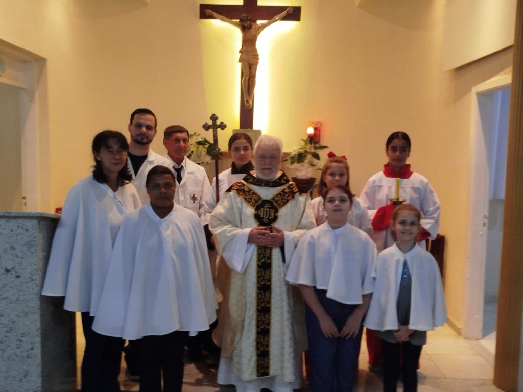 Na noite desta segunda-feira (13), o frei presidiu a Santa Missa na Capela São Francisco, que ele próprio fundou em 1984. A capela pertence à Paróquia Nossa Senhora da Luz e reuniu fiéis em um momento marcado por emoção e gratidão.